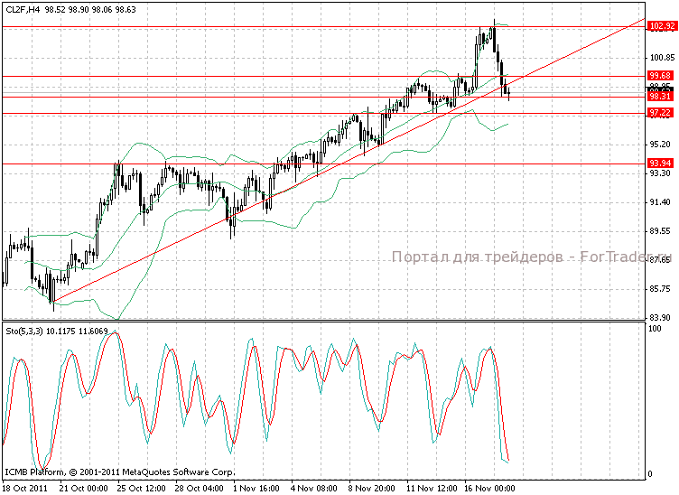 Сырьевой индекс Standard & Poor’s GSCI показывает максимальное снижение за последние два месяца, многие мировые фондовые площадки корректируются четвертую сессию подряд, а поэтому снижение по нефти вполне логично. Нефть может получить поддержку в области 98,00, но при слабом новостном фоне снижение продолжится в район 76,00.