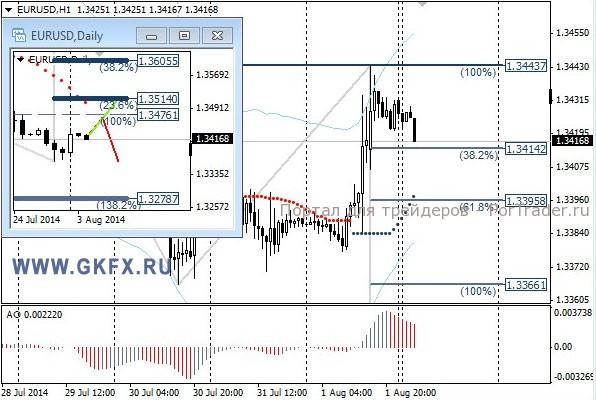 Пара EURUSD в пятницу выросла, так как данные по новым рабочим местам вне с/х США не оправдали ожиданий. По идее показатель составил более 200 000, а это уже очень хорошо, но рынок ждал большего. По этой причине рекомендаций под эти данные не даю. На этой неделе внимание будет сконцентрировано на данных по Еврозоне. Основным станет заседание ЕЦБ, хотя изменений в политике не ожидается. На эту неделю традиционно рассматриваю два варианта возможного движения цены, основной красный и альтернативный зеленый. Значимые уровни на сегодня отмечены на часовом графике. Индикатор АО находится в положительной зоне и снижается, указывая на коррекцию перед возможным продолжением роста. Индикатор тренда указывает на рост. Сегодня наблюдаем за желанием рынка.
