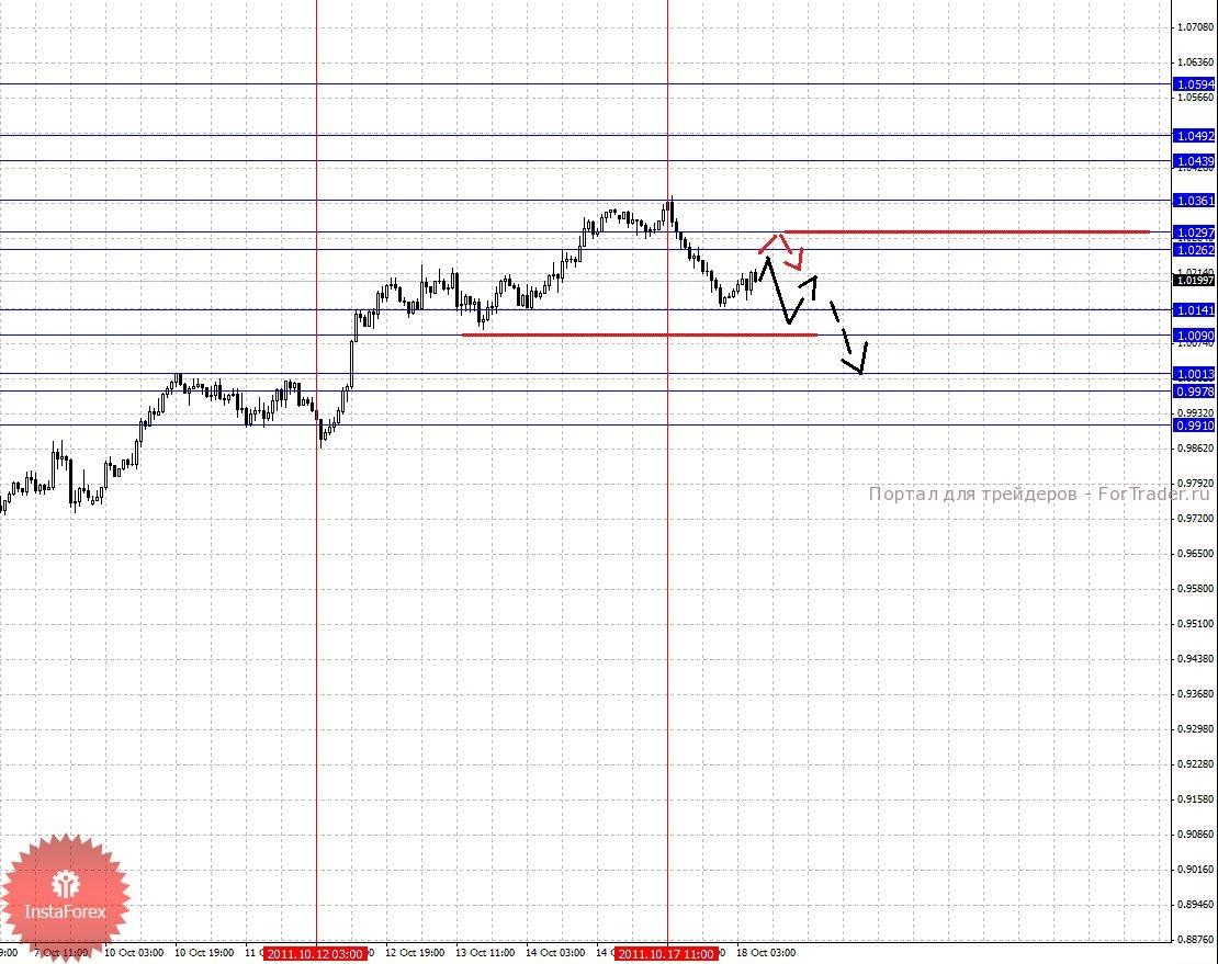 По паре Австралийский доллар/Доллар ключевыми уровнями являются: 1.0594, 1.0492, 1.0439, 1.0361, 1.0297, 1.0262, 1.0141, 1.0090, 1.0013, 0.9978 и 0.9910. Здесь от 17 октября наблюдается потенциал для движения к низу, однако восходящая структура пока все еще актуальна для определения целей. Диапазон 1.0141 – 1.0090 является ключевой поддержкой для верха, в нем мы ожидаем краткосрочное нисходящее движение, пробой последнего значения приведет к развитию импульса, в данном случае цель 1.0013. В коридоре 1.0013 — 0.9978 консолидация цены. Потенциальным значением для низа, считаем уровень 0.9910, по достижении которого, ожидаем откат к верху. Корректировочное восходящее движение, возможно в диапазоне 1.0262 – 1.0297, пробой последнего значения будет располагать к развитию восходящей структуры в масштабе Н1, в данном случае первая цель 1.0361. Далее ключевые уровни для верха остались без изменения.