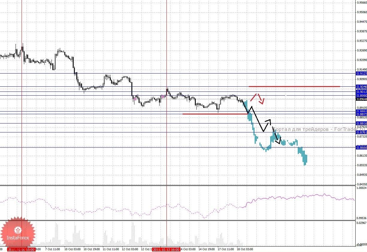 По паре Доллар/Франк ключевым уровня являются: 0.9127, 0.9046, 0.9013, 0.8990, 0.8891, 0.8873, 0.8816, 0.8761 и 0.8666. Здесь мы расширили потенциал для нисходящего движения. Продолжения движения к низу, ожидаем после прохода ценой шумового диапазона 0.8891 – 0.8873, в данном случае цель 0.8816, по достижении этого уровня ожидаем консолидацию. Пробой 0.8816 позволит рассчитывать на движение к 0.8761, по достижении которого, ожидаем откат к верху, а также консолидированное движение в коридоре 0.8816 – 0.8761. Потенциальным значением для низа, считаем уровень 0.8666, который является ключевым для нисходящей структуры от 6 октября. Корректировочное восходящее движение, возможно в диапазоне 0.8990 – 0.9013, пробой последнего значения приведет к углубленной коррекции, здесь цель 0.9046, от этого уровня высока вероятность разворота к низу, его пробой окажет негативное влияние на развитие нисходящей тенденции в масштабе Н1, в данном случае цели пока не определены. Уровень 0.9127 является ключевым сопротивлением для верха и интересен с точки зрения среднесрочной перспективы, до него мы ожидаем оформления начальных условий.