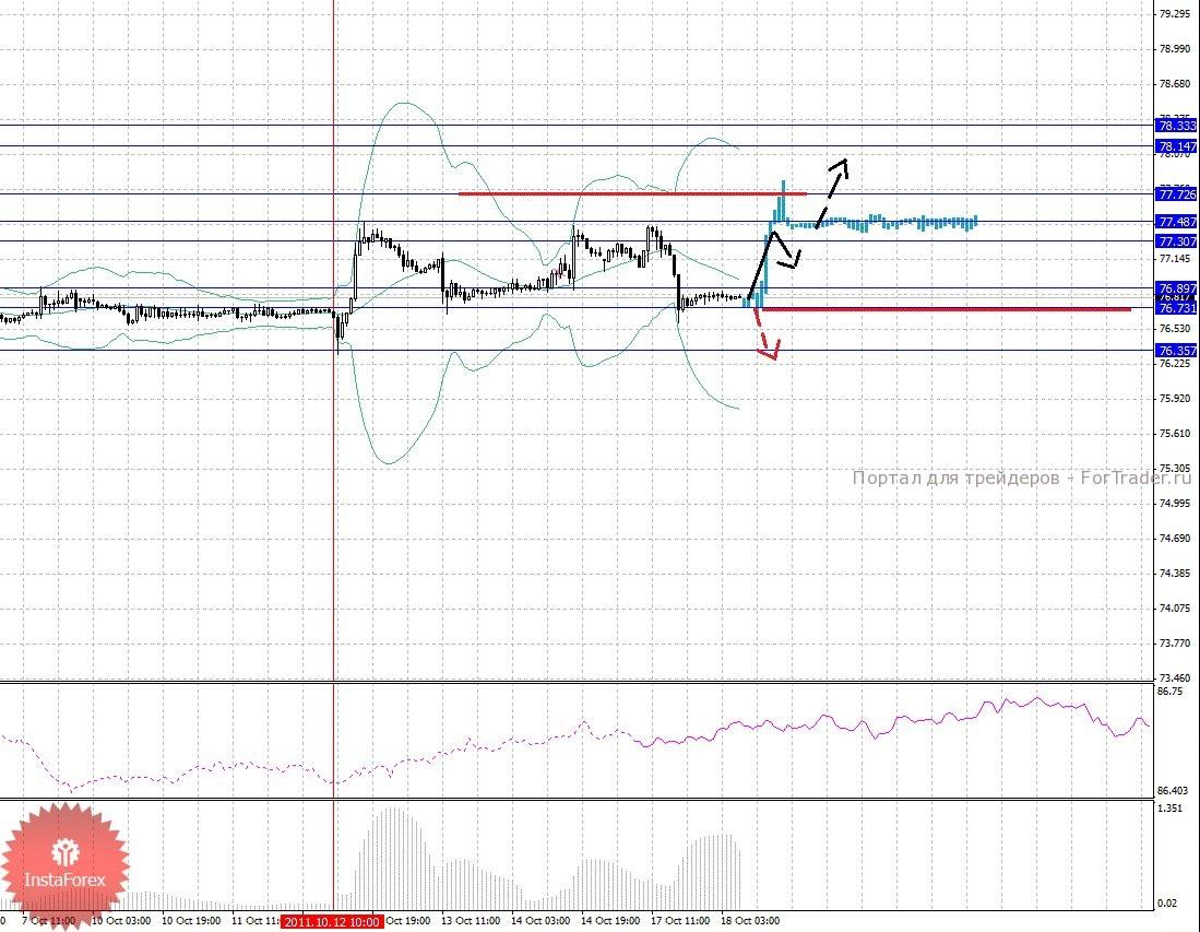 По паре Евро/Доллар мы наблюдаем равновесную ситуацию и здесь необходимо обратить внимание на корреляцию данного инструмента с такими валютами как Канадский доллар и Австралийский доллар. По паре Доллар/Франк мы расширили потенциал для нисходящего движения от нисходящей структуры 6 октября. По паре Доллар/Йена продолжаем следить за восходящей структурой от 12 октября, необходимо понимать, что выход цены из диапазона 76.89 – 76.73 отменит данное формирование. По паре Евро/Йена восходящая тенденция остается актуальной для определения целей. По паре Фунт/Йена продолжаем рассматривать восходящую структуру от 6 октября.