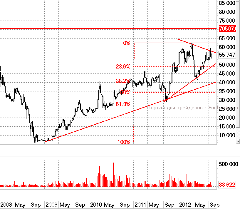 Напомним, что «Транснефть» превзошла ожидания прогнозов при демонстрации отчета МСФО за 1К2012 года. Если темпы набранные компанией не иссякнут, то стоит ждать новых исторических максимумов по бумаге. В ближайшей же перспективе, более обозрима точка фиксации на отметке в 70 500 руб. за акцию.