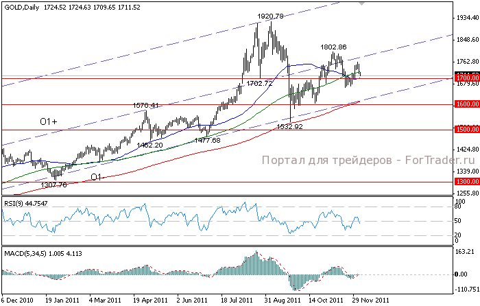Издание Financial Times в понедельник сообщило о том, что рейтинги «ААА» стран еврозоны будут помещены агентством Standard & Poor’s в список на пересмотр с возможностью понижения. Позднее агентство Dow Jones сообщило о том, что S&P поместит в этот список рейтинги всех 17 стран еврозоны, включая Германию и Францию. В конечном итоге S&P объявило, что рейтинги 15 из 17 стран помещены в список на пересмотр с возможностью понижения. Кипр уже находился в этом списке, а негативный прогноз для Греции остался без изменений. Понижение рейтингов во многом зависит от того, будет ли достигнут заметный прогресс на саммите ЕС, который пройдет позднее на этой неделе. Инвесторы негативно отреагировали на сообщения, так как снижение рейтинга Франции или Германии может поставить под вопрос будущее Европейского фонда финансовой стабильности, так как это приведет к резкому росту стоимости заимствований для фонда, что значительно снизит его эффективность в деле стабилизации долгового кризиса. В результате участники рынка в поиске убежища вновь обратились к доллару США, избавляясь при этом от широко спектра активов, включая золото.