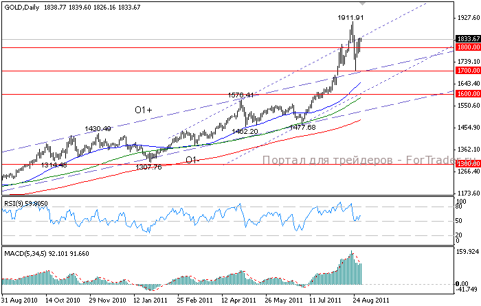 С технической точки зрения золото вновь выросло выше отметки 1800.00, что нацеливает его на прорыв к текущему максимуму 1910.00 и далее в направлении отметки 2000.00. Ближайшая второстепенная поддержка образовалась в районе 1775.00, и только прорыв ниже нее откроет дорогу снижению к поддержке 1700.00 или ниже к 50-дневной SMA в район 1650.00.