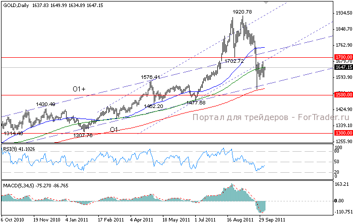 После падения золота с уровней выше 1900.00 долларов за унцию, инвесторы опасаются открывать новые крупные позиции, вследствие чего металл торгуется в диапазоне, ориентируясь на поведение других сырьевых товаров и акций. При этом в ходе прошедшей сессии наблюдался рост котировок на фондовых площадках, а также цен на нефть, что в целом оказало поддержку рынку драгоценных металлов. Кроме того, в ходе сессии наблюдалось краткосрочное падение цен на золото ниже отметки 1600.00, что вызвало некоторый интерес к покупкам у инвесторов, ищущих наиболее выгодную цену после роста стоимости желтого металла к недавним рекордным максимумам. С технической точки зрения, золото вновь стремится закрепиться выше 100-дневной SMA. В случае успеха оно, вероятно, продолжит рост с целью к 50-дневной SMA, проходящей в районе 1755.00. Однако если закрепиться выше 100-дневной SMA не удастся, риски по-прежнему будут смещены в сторону падения к 200-дневной SMA в район 1535.00 или отметке 1500.00, прорыв и закрепление ниже которой окончательно подтвердит смену долгосрочного восходящего тренда.