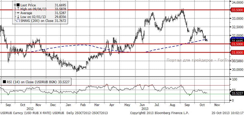 На наш взгляд, краткосрочно можно ожидать небольшое укрепление американского доллара против российской валюты. Цена находится на 200-дневной поддержке скользящей средней, 31-31,50 руб. как раз время для формирования длинных позиций.
