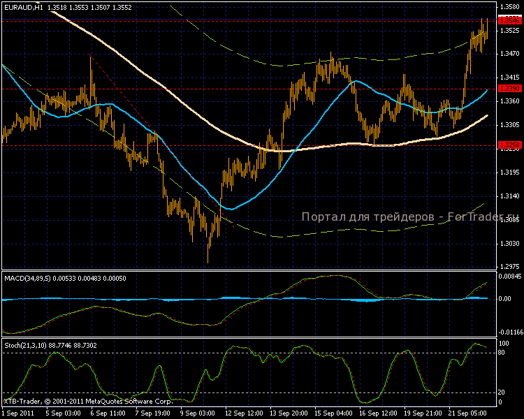 На мировом финансовом рынке валютная пара EUR/AUD показывает значительный рост котировок, на сегодняшней азиатской сессии торги дошли к отметке 1,3550.