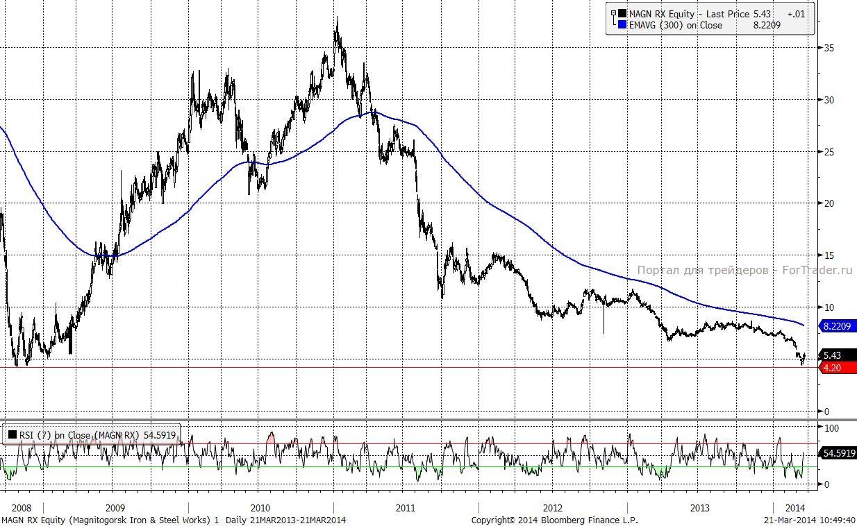 На Московской бирже дешевеют практически все бумаги. Позитив отмечается лишь кое-где, в том числе по акциям ММК. Стоит отметить, что именно ММК достиг уровней кризисного 2008 года, так что сейчас есть желающие купить «в долгую».