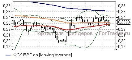 ФСК ЕЭС (+0,94%) – акции приостановили снижение в районе ряда линий «долгих» скользящих средних дневного графика (0,228-0,232 руб), которые могут способствовать развитию коррекционного отскока в случае благоприятного внешнего фона. Наиболее рискованным игрокам можно играть наверх с установкой «короткого» стопа чуть ниже 0,228 руб, при этом положительным сигналом служило бы закрепление выше средней полосы Боллинжера (0,234 руб) – в этом случае следующей целью выступит район 0,243 руб. «Быкам», однако, стоит проявлять осторожность – бумаги вполне могут вскоре пробить и важные поддержки, что способствовало бы ускорению темпов снижения.