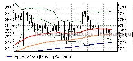 Уралкалий (+0,21%) – акции торгуются вплотную к линии EMA100 (252 руб), ниже которой закрепились по итогам пятницы. Неспособность бумаг отыграть указанное значение будет говорить о высокой опасности развития снижения ближе к нижней полосе Боллинжера, а также линии EMA200 (245 руб), возможности чего не исключают и показания дневного графика. При закреплении выше 252 руб потенциал краткосрочного роста может ограничиться средней полосой Боллинжера и линией EMA55 (256,8 руб) – основное движение бумаг в последние дни является нисходящим.