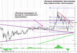 Да, динамичность движения котировок изменилась. Но! Знаковый уровень все тот же – 0,41 рубля. Это уже не только психологический рубеж, но и линия нисходящего январского тренда. Но когда трейдеры рисковали в начале года, покупая пробои 0,41, там были понятны их великие цели — 0,48-0,5 рубля.