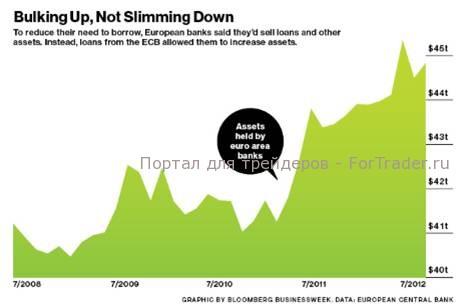 Да, все старые привычки 2007-2008 гг. вернулись, и большинство банков в 2012 увеличили, а не уменьшили свои балансы! Как говорится в статье агентства Bloomberg, европейские банки пообещали сократить свои балансы на 1,2 трлн евро: Европейские банки откладывают свою диету (European Banks postpone their diet).