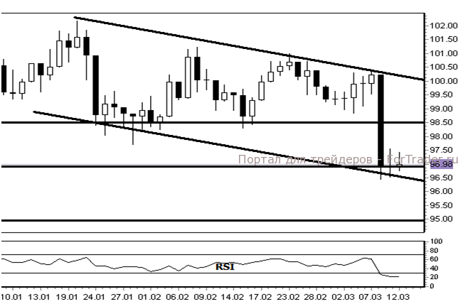 Торговая рекомендация: В случае пробоя вниз уровня поддержки возможно дальнейшее снижение к 95$ за акцию. Индикатор RSI находится в зоне перепроданности, и в случае если уровень 96,90$ устоит, акции могут подорожать до отметки 98,50$.