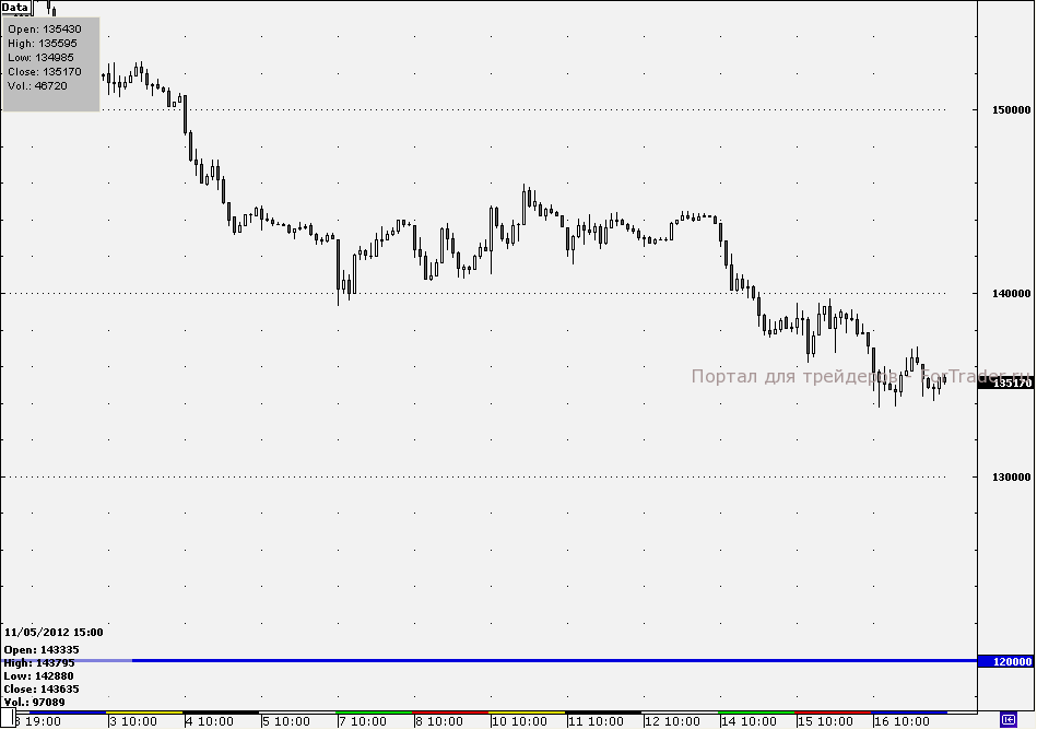 Вчера важный уровень 135 000 пунктов был пробит вниз. Ожидания продолжают быть отрицательными – медвежий тренд, судя по всему, будет продолжен в ближайшие дни. Однако сильные движения не происходят без отклонений от тенденции, и сегодня откат в нисходящем движении также весьма вероятен.