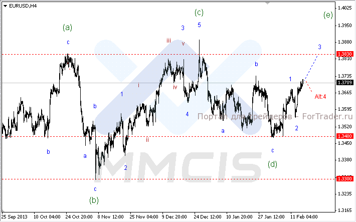 На минувшей неделе пара евро/доллар делала попытки развить нисходящее движение. Тем не менее из-за роста котировок технические аналитики решили пересмотреть «медвежью» разметку пары. Поэтому в качестве основного сценария на сегодня рассматривается дальнейшее укрепление евро в рамках третьей волны в район отметки 1.3830.