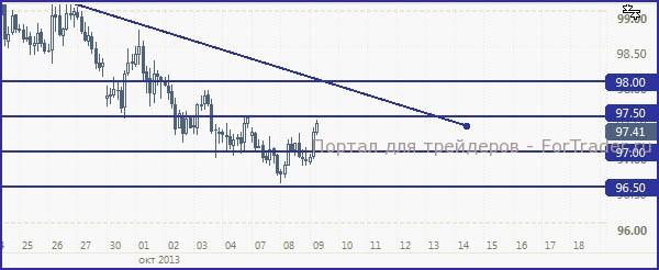 USD/JPY, вероятно, закрепится выше отметки в 97.50 йен за доллар и подрастет немного выше.