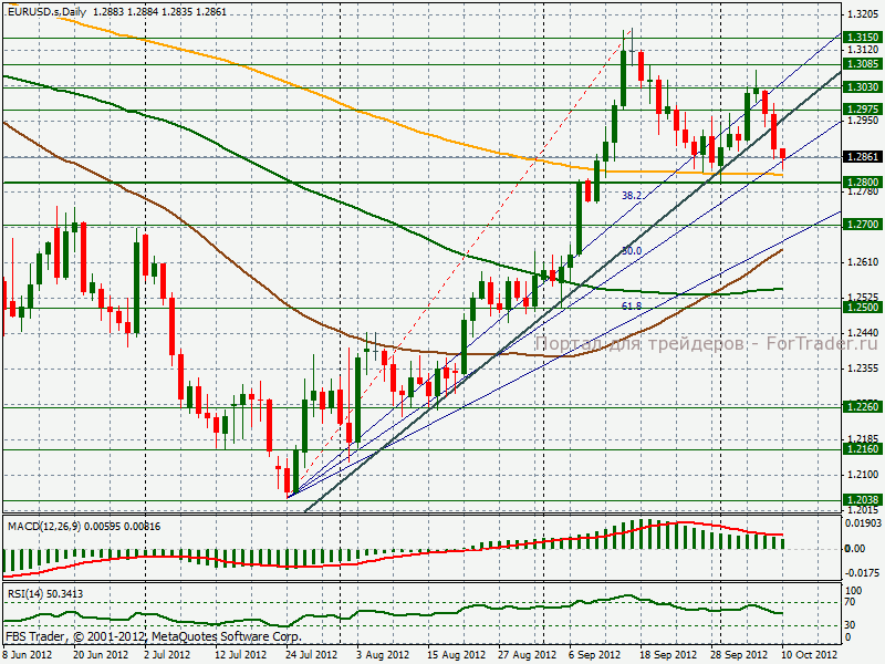 Во время азиатской сессии пара EUR/USD побила $1.2835, минимальный уровень с 1 октября. Все внимание рынка сосредоточено на ключевых уровнях поддержки – $1.2825 (200-дневная скользящая средняя) и $1.2800.
