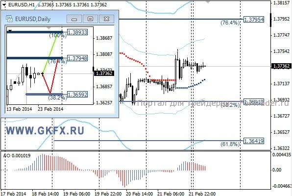 Пара GBPUSD в пятницу торговалась разнонаправлено в рамках коррекции. По причине коррективного движения цены рекомендаций не давал, так как стопы слизывают, будь здоров. На прошлой неделе, на дневном графике отработался красный вариант движения цены. На этой неделе по традиции рассматриваю два варианта возможного движения цены, основной красный и альтернативный зеленый. Значимые уровни на сегодня отмечены на часовом графике. Индикатор АО находится в отрицательной зоне и растет, указывая на коррекцию перед возможным продолжением снижения. Индикатор тренда указывает на снижение. Сегодня наблюдаем за желанием рынка.