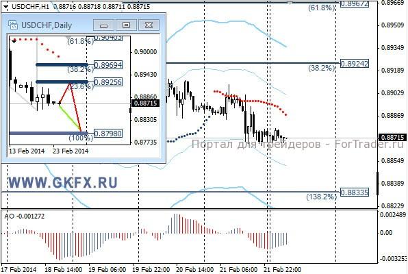 Пара USDCHF также как и евро ушла от формирования пинбара на недельном графике, и это означает, что снижение пары может продолжиться на текущей неделе. На прошлой неделе, на дневном графике не отработался не один из вариантов движения цены. На эту неделю традиционно рассматриваю два варианта возможного движения цены, основной красный и альтернативный зеленый. Значимые уровни на сегодня отмечены на часовом графике. Индикатор АО находится в отрицательной зоне и растет, указывая на коррекцию перед возможным продолжением снижения. Индикатор тренда указывает на снижение. Сегодня наблюдаем за желанием рынка.