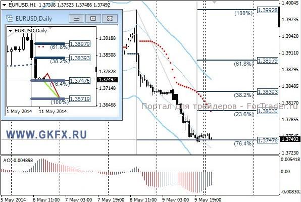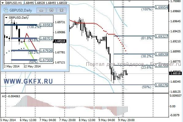 Пара EURUSD продолжила снижение на фиксации длинных позиций после заявлений в четверг президента ЕЦБ Трише. Инвесторы опасаются, что ЕЦБ может все же начать действовать в июне. Последние два дня снижение было очень агрессивное, поэтому нужно быть очень осторожным. На этой неделе снижение может продолжиться. Прошедшая неделя отработала по красному сценарию за три дня, а затем направилась вниз. Взять прибыль не удалось, так как все было скоротечно. На эту неделю традиционно рассматриваю два варианта возможного движения цены, основной красный и альтернативный зеленый. Значимые уровни на сегодня отмечены на часовом графике. Индикатор АО находится в отрицательной зоне и растет, указывая на коррекцию перед возможным продолжением снижения. Индикатор тренда указывает на снижение. Наблюдаем за желанием рынка.