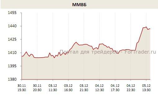 Пока же на московской бирже господствует какой-то безрассудный оптимизм, вдохновением которого стали настроения за рубежом, и, прежде всего, сегодняшний подъем в Китае, индекс SSE взмыл на 3% после, впрочем, откровенно невыразительного ноября. Пробой сопротивления в 1420 пунктов по индексу ММВБ сорвал стопы и вывел рынок на новый уровень, но после обеда инвесторы все же приступили к осторожной фиксации прибыли. К 14:35 по Москве индекс ММВБ вырос на 1,8% до 1437,2 пунктов, индекс РТС прибавил 1,85%, составляя 1470,58 пунктов. Вытянули рынок вверх акции «Газпрома» (+2,01%), «Роснефти» (+2,24%), «ЛУКОЙЛа» (+1,88%), «Сбербанка» (+1,96%), «Норильского Никеля» (+4%), «Новатэка» (+2,53%) и «ФСК ЕЭС» (+2,2%).