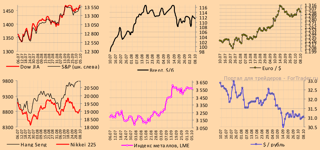США. Растет объем потребкредитования, за месяц на 18,12 млрд. долл., что превысило ожидания более чем в 2 раза. Последняя статистика по безработице тоже казалась самой что ни на есть благоприятной, а именно — ее уровень по сравнению с показателем предыдущего месяца снизился с 8,2 до 7,8% при том, что ожидания были в размере 8,2%. Но статистика безработицы вызвала недоверие, поскольку столь масштабный позитив не согласовывался с явно недостаточным ростом занятых в производстве (114 тыс.). Возможно, свою роль сыграло различие методик получения статданных, так, информация о количестве рабочих мест представляется предприятиями, тогда как уровень безработицы рассчитывается по результатам обследования домохозяйств и учитывает только лиц, желающих найти работу. Несмотря на позитивную тенденцию рынка занятости, инвесторы оценили уровень безработицы все еще достаточно высоким, а рост занятых в производстве (114 тыс.) недостаточным, к тому же, и объем промзаказов за месяц снизился на 5,2% по сравнению с предыдущим месяцем (хотя это и меньше, чем ожидалось, -5,9%). Динамика промзаказов действительно является одним из важных комплексных индикаторов перспектив экономики, учитывает заказы на товары и кратковременного (продукты питания, одежда, товары легкой промышленности), и длительного (автомобили, мебель и другие) пользования. В дополнение к неоднозначному восприятию статистики, инвесторы уже настраивались на начало очередного сезона корпоративной отчетности, который, как ожидается, может быть разочаровывающим. В условиях замедления глобальной экономики вполне ожидаемо не только ухудшение финансовых результатов корпораций, но и пересмотр ими прогнозов по прибыли в сторону понижения. Так что неудивительно, что в результате торгов Dow Jones =+0,26, S&P 500 =-0,03, Nasdaq Composite =-0,42%. Сегодня отмечается федеральный праздник, День Колумба, банки и долговые рынки будут закрыты, но торги акциями состоятся.