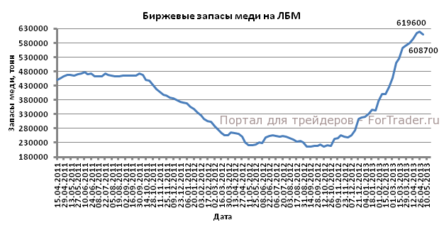 Между тем, еще одним драйвером для столь сильного роста котировок меди на текущей неделе стало снижение биржевого запаса данного актива на Лондонской бирже металлов (ЛБМ).