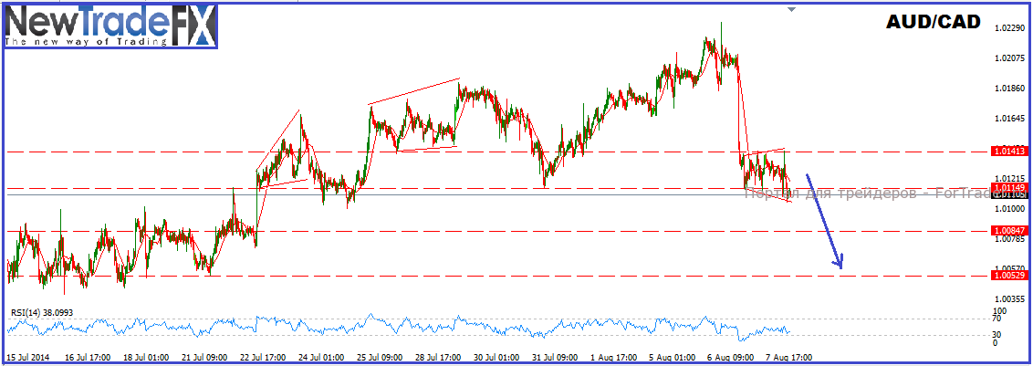 Открываем короткую (на понижение) позицию AUD/CAD по цене : (1.015-1.025)