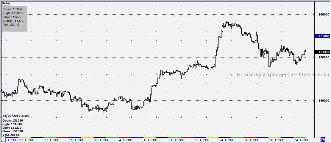 Говоря об опционах, нельзя выделить однозначно уровень максимального открытого интереса по контрактам put – опционная поддержка не выражена. Зато количество опционов call со страйком 155 000 пунктов максимально, именно на этом уровне наблюдается опционное сопротивление.