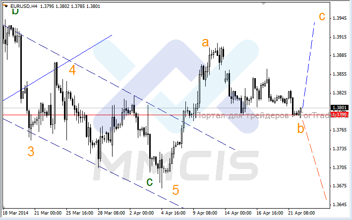 Таким образом, в качестве основного сценария рассматривается рост в направлении отметки 1.3950 в рамках волны «с». В качестве альтернативного сценария рассматривается пробой уровня поддержки 1.3790, после чего рынок будет стремиться к минимуму волны «5», в район уровня 1.3700.