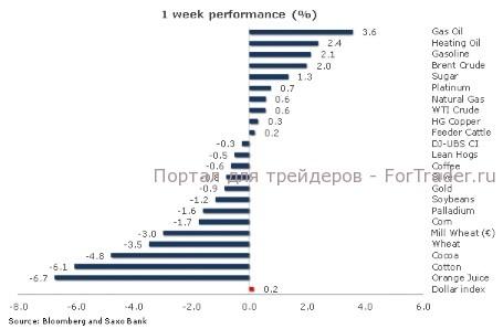 Товарные рынки закончили прошлую неделю разнонаправлено. Цены на энергоресурсы повысились на фоне сильных заморозков по всей Европе и улучшения экономических перспектив, в то время как на сельскохозяйственном рынке наблюдались слабые продажи. Индекс DJ-UBS, который включает в себя 20 основных сырьевых товаров, за прошлую неделю просел на 0,3%, а с начала года прибавил 3,2%.