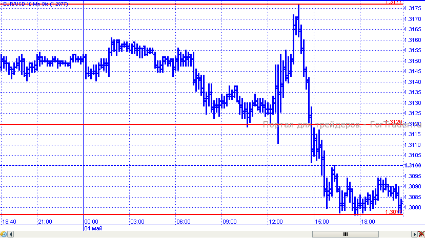 Последний рабочий день недели оказался достаточно волатильным. Вплоть до начала американской сессии пара демонстрировала умеренное снижение к уровню 1,3120. Однако, данные по рынку труда США оказали давление на доллар и пара подскочила до внутридневного максимума на 1,3177. Удержаться на этом уровне пара не удалось под влиянием целого ряда негативных слухов в отношении Е17, что спровоцировало бегство из рискованных активов. В результате, пара преодолела поддержку 1,3100 и торговые сутки завершила в районе уровня 1,3080.
