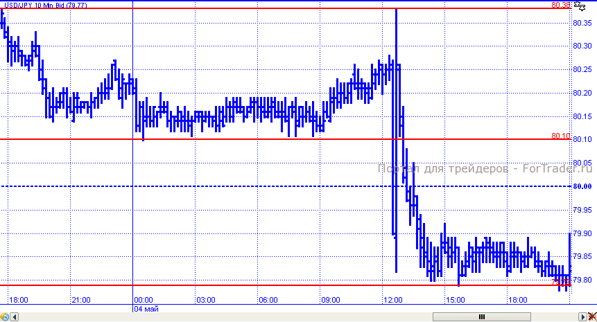 Торговые сутки в пятницу пара начала очень сдержанно, в пределах узкого диапазона 80,10 – 80,27. Максимум торговых суток был отмечен на уровне 80,38, от которого цены устремились вниз, преодолели поддержку 80,00 и торговые сутки завершил в районе уровня 79,80. Поддержку иена получила со стороны бегства из рискованных активов.