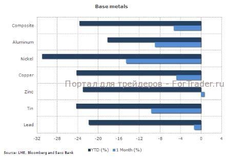 На фоне ухудшения экономических перспектив падают цены на все: от меди до никеля. Композитный индекс LME по результатам 2011 года теряет почти 24%, и сильные потери зафиксированы во всех компонентах. Показатели ведущих горнодобывающих компаний ухудшились: индекс Bloomberg World Mining Index с начала года понизился примерно на одну треть.