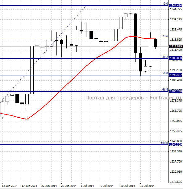 Покупать при пробое уровня 1326 с целью 1344. Стоп-лосс = 1310. Число выданных разрешений на строительство нового дома в США в июне снизилось с 1,01 млн. (г./г.) до 0,96 млн. (г./г.). Число закладок новых домов в США в этом же месяце снизилось с 0,99 млн. до 0,89 млн. Данные показывают сокращение деловой активности в строительном секторе США, что может оказать давление на мировую резервную валюту.