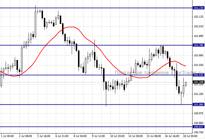 Покупать при пробое уровня 101,44 с целями 101,78 и 102,23. Stop-Loss = 101,00. Сегодня вечером будут опубликованы индекс потребительского доверия в США от университета Мичигана, а также индекс опережающих экономических индикаторов США от компании Conference Board. Позитивные ожидания по ним способны усилить спрос на мировую резервную валюту.
