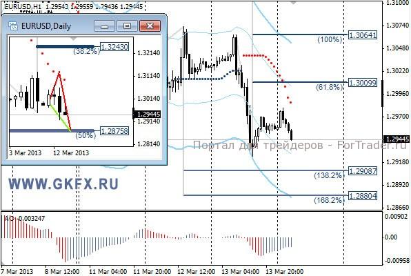 Пара EURUSD вчера обновила минимум с декабря 2012 года и может сегодня продолжить снижение. Данные по Еврозоне вчера разочаровали вместе с Итальянским аукционом, поэтому пара значительно снизилась за день. Сегодня вряд ли что-то сможет сменить настроения, поэтому ожидаю продолжения снижения. На этой неделе рассматриваю традиционно два варианта возможного движения цены, основной красный и альтернативный зеленый, склоняюсь к красному. Значимые уровни на сегодня отмечены на часовом графике. Индикатор АО в отрицательной зоне и движется вверх, указывая на коррективное движение перед возможным продолжением снижения. Индикатор тренда указывает на снижение. Sell от 1.2965 или выше со стопом 1,2985. Цель 1,2900.