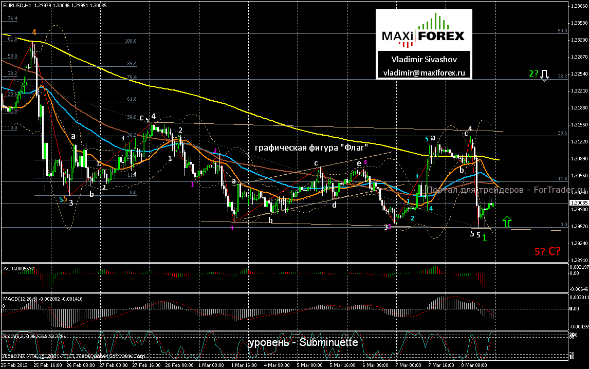 В нашем прогнозе на понедельник, предполагаем – разворот и коррекционный подъём курса единой европейской валюты к целевым уровням: 1.3031; 1.3060; 1.31 и, возможно, к 1.3134.