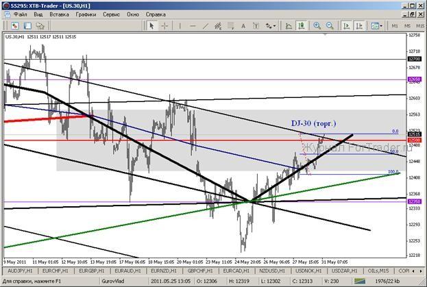 С начала торгов во вторник 31 мая котировки фьючерсных контрактов на американские биржевые индексы стали расти. Индекс Dow Jones вырос к 10 часам киевского времени выше уровня 12500, остаётся в области уровней 12475-12525. На сегодняшних торгах есть вероятность роста в область уровней 12575-12625, что окажет поддержку сырьевым рынкам.