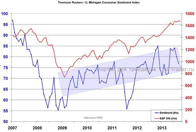 Это первый отчет за ноябрь. Принимая во внимание тот факт, что закрытие правительства и предстоящие переговоры о бюджете в Вашингтоне подорвали оптимизм среди потребителей, сегодня нас, скорее всего, будет ждать небольшое понижение индекса. Консенсус-прогноз предусматривает падение с 75,2 в октябре до 74,4. Таким образом, индекс приближается к нижней границе диапазона, однако место для дополнительного ухудшения данных в перспективе ближайшего месяца еще есть. Если вокруг переговоров о бюджете снова возникнет сумятица, то масштабы падения могут увеличиться, как это произошло в 2011 году.