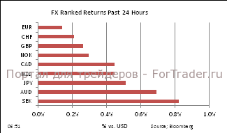 Достигнув самого высокого уровня с середины декабря, евро-быки во время торгов в Лондоне вчера получили жестокий удар. Им было много чего бояться, включая решение ХДС противостоять идее Меркель параллельного существования EFSF и ESM, предложение Германии назначить бюджетного комиссара с правом вето на решения по расходам и налогам в Грецию и обновленные опасения вокруг быстро распространяющегося ухудшения на Пиренейском полуострове. Доходность португальских суверенных облигаций подскочила вчера: десятилетки достигли экстраординарных 17%; рынки ожидают, как минимум, массивной реструктуризации в ближайшие месяцы. Итальянские бумаги не смогли избежать продаж, получив рост доходности на 25 б.п. в какой-то момент. Европейские активы так же падали, особенно досталось банкам. Доллар и иена были основными победителями на форекс на этом развороте спроса на риск.