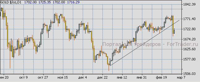 Я не думаю, что поводом для столь внушительной коррекции стали сообщения Бернанке. Золото по-прежнему остается валютой без суверенной нагрузки, а не товарным активом, реагирующим на укрепление американской валюты. Отчет Всемирного золотого совета за 4 квартал показал, что руководства центральных банков являются нетто-покупателями золота. Более того, их спрос на драгоценный металл поставил сорокалетний рекорд. ЦБ видят в физическом металле хранилище ценности против растущей инфляции. Причиной же вчерашнего падения стала перекупленность рынка, а также снизившиеся объемы торговли. Коррекция пойдет на пользу сильному восходящему тренду.