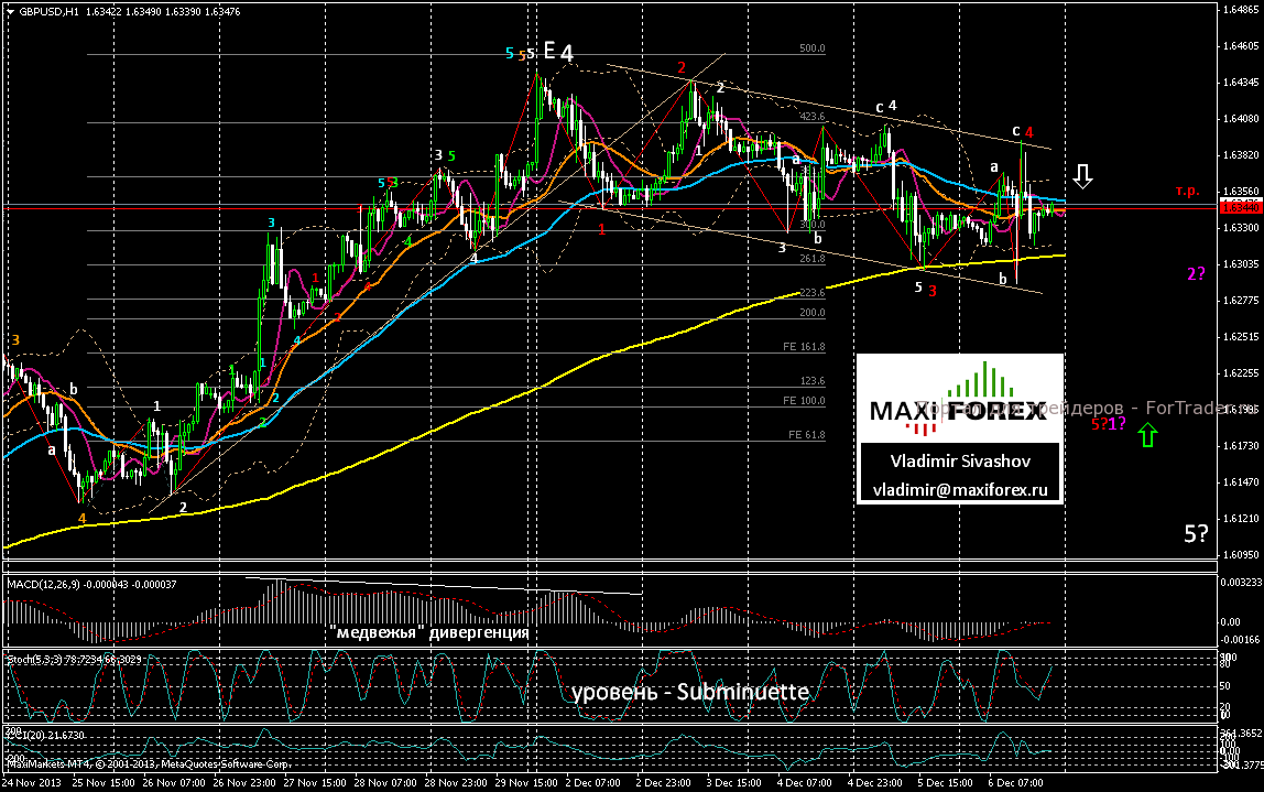 В нашем сегодняшнем прогнозе предполагаем коррекционный откат пары в ценовую зону 1.6360 ÷ 1.6380, а затем — разворот и новый этап нисходящего движения.