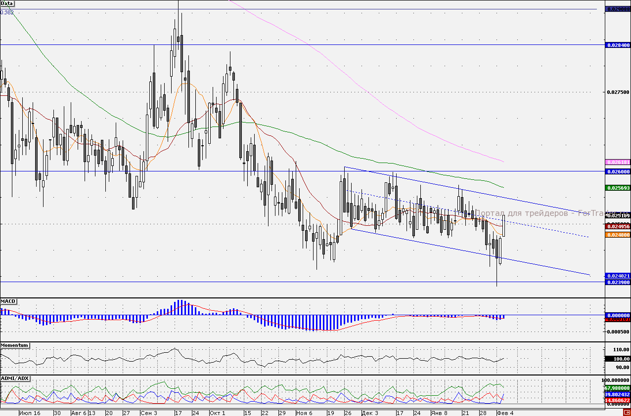 Позитивные ожидания декабрьских данных по промышленным заказам в Германии (15:00 мск) подогревают интерес покупателей к рисковым активам. Тем не менее, текущая сессия не богата на события, и помимо статистики из Германии иных сообщений, способных оказать влияние на динамику торговых индикаторов, не ожидается, что может препятствовать продолжению покупок. Не стоит исключать и возможное желание инвесторов зафиксировать прибыль из-за близости сопротивлений на американском рынке. Сопротивлением для индекса ММВБ является максимум февраля 1555 пунктов, далее 1560 пунктов, при этом в качестве поддержки для рублевого индикатора выступает отметка 1540 пунктов.