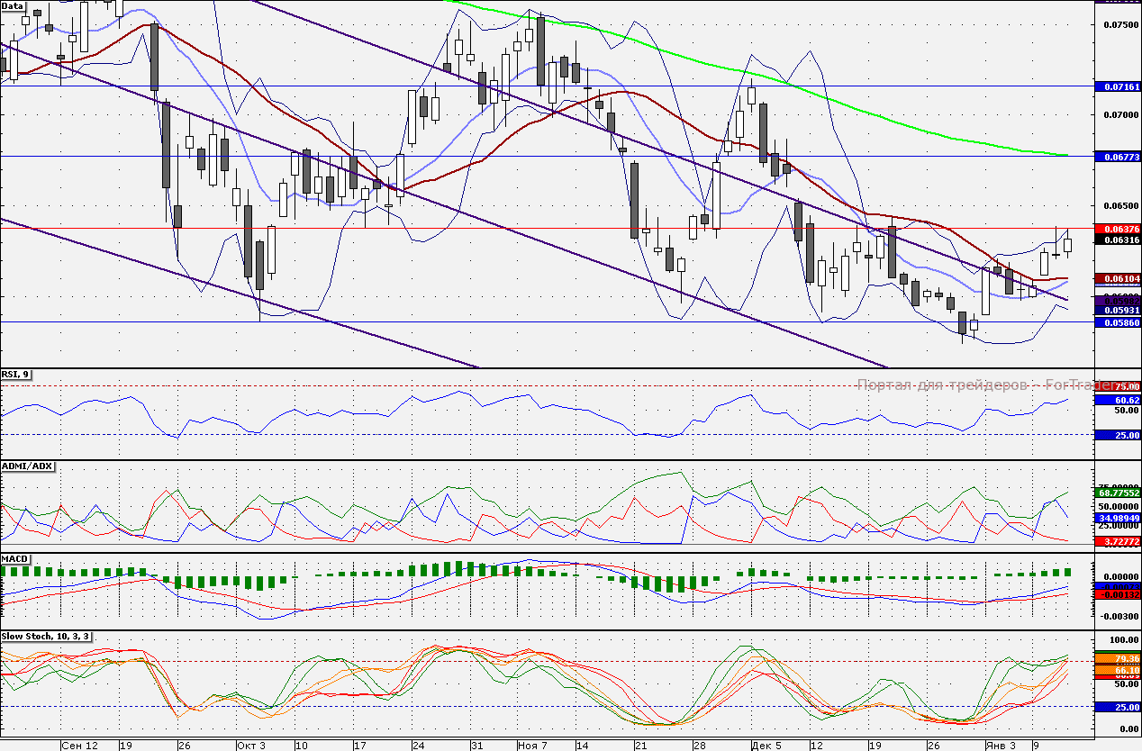 Акции банка второй раз протестировали сопротивление 6,376 коп., но вновь не пробили данную отметку. В районе данного сопротивления сегодня также стоит сокращать «лонги» . Поддержкой является отметка 6,200 коп., а далее акции могут устремиться к 21-дневной скользящей средней – 6,104 коп. Наиболее важной поддержкой является 6,000 коп.
