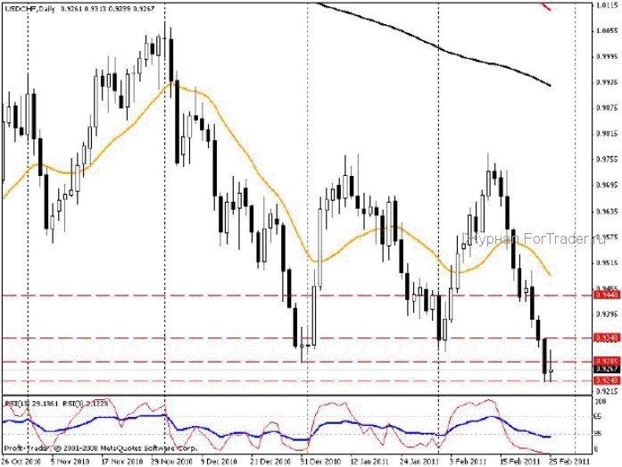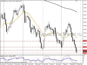 На прошедшей неделе данная валютная пара разбила все надежды на восстановление роста в ближайшем будущем.. Ключевым для пары является диапазон 0,9240 – 0,9285. В случае начала коррекции и пробития отметки 0,9285 пара протестирует отметку 0,9340, а далее может вырасти до 0,9440. В случае продолжения падения прогнозировать целевые уровни для данной валютной пары не представляется возможным. Скользящие средние на недельном, дневном и четырехчасовом графиках указывают на снижение пары. RSI на недельном, дневном и четырехчасовом графиках указывает на перепроданность пары. Мы ожидаем коррекции в ближайшей перспективе, однако занимаем медвежью позицию по данной валютной паре и рекомендуем ее к продаже выше 0,9340. Однако при этом сохраняется вероятность развития абсолютно противоположного сценария, но о нем можно будет говорить лишь в случае роста выше 0,9440.