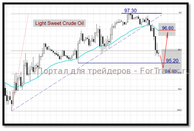 В среду, 9 ноября, на рынке нефти возможны технические продажи, связанные с фиксацией прибыли по спекулятивным длинным позициям. Восходящее ралли, начавшееся с начала октября пока не испытало промежуточных коррекций, что повышает риски кратковременного падения цен на достигнутых максимумах. Сегодня Минэнерго США опубликует официальную статистику по коммерческим запасам сырой нефти за неделю с 29 октября по 4 ноября, которая, судя по ожидаемому увеличению показателя на 500 тыс. баррелей, может охладить нефтяных быков. По нашим оценкам, наиболее вероятный диапазон колебания фьючерсов составит 95.20$-97.30$ Light и 114$-116.60$ Brent. Кратковременное снижение цен к областям 95.20$, 94.80$ Light станет благоприятным к открытию длинных позиций с целевым ориентиром 96.60$ по внутридневным торговым стратегиям. В качестве альтернативного сценария можно рассмотреть более глубокую коррекцию рынка к области 94.50$, 112$ эталонных сортов Light Sweet Crude Oil и Crude Oil Brent соответственно.