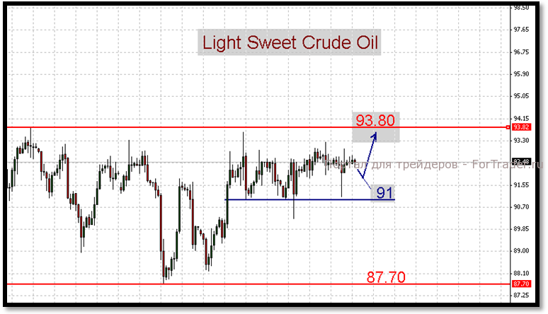 По нашим наблюдениям, возросший с начала текущей недели аппетит инвесторов к риску, постепенно “обходит стороной” рынок нефтяных фьючерсов. Накануне, инвесторы заложили в нефтяные котировки возможность обращения Испании за финансовой помощью, а снижение доходности по “десятилеткам” ниже 5,5% фактически определило пик укрепления евро против доллара на рынке FOREX. В результате, усиление позиций американской валюты вернуло “черному золоту” медвежий настрой от областей сопротивления 93$ Light и 113,50$ Brent.