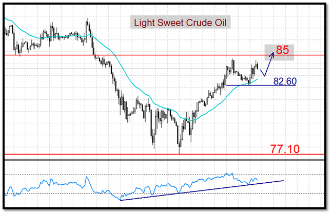 Техническая картина подтверждает развитие восходящей динамики от минимумов 77.10$ Light, 101.60$ Brent. В качестве целевой отметки к росту выступают области сопротивления 85$, 108.70$ соответственно, где вероятно произойдет фиксация длинных позиций внтридневными спекулянтами. Сценарий к возобновлению снижения пока не находит доказательств к развитию, пока котировки держаться выше областей 82.60$ Light, 106$ Brent. Для открытия коротких позиций рекомендуется дождаться тестирования целевых отметок или использовать поддержку 82.60$, 106$, к наращиванию “лонгов”.
