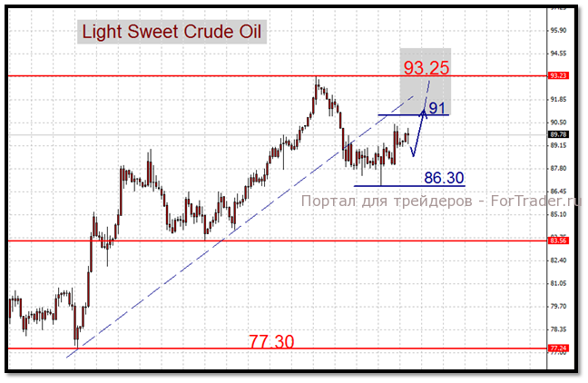 По нашим оценкам, ближайшим целевым сопротивлением на сегодня выступают уровни 91$ Light и 107$ Brent. Закрытие недели выше данных отметок может дать хорошие шансы на более существенное восстановление.